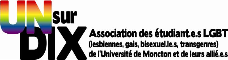 Une Semaine de sensibilisation à la diversité sexuelle organisée par l’association Un sur Dix aura lieu du 19 au 23 mars au campus de Moncton.La Semaine commencera le lundi 19 mars avec la levée du drapeau de la fierté LGBT, à 11 h 30 à l'entrée du stade, en compagnie d’Hugo Lavoie, vice-président de l’association Un sur Dix, Marie-Linda Lord, vice-rectrice aux affaires étudiantes et internationales, et Jean-Roch Savoie, président de l’association Un sur Dix. Il s'agira de la toute première levée du drapeau de la fierté LGBT au campus de Moncton.