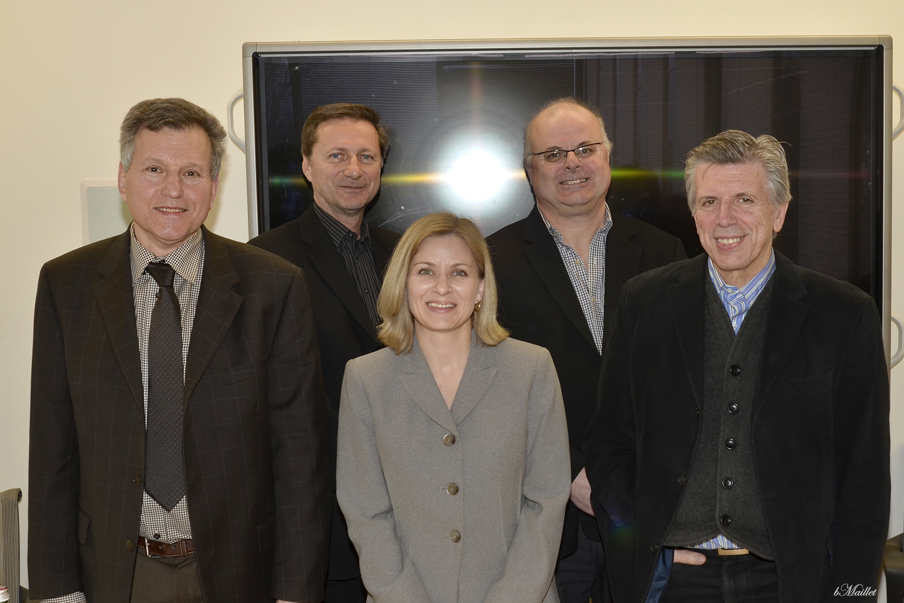 La photo prise lors de la table ronde nous fait voir, de gauche à droite, Denis Bourque, professeur titulaire au Département d’études françaises et directeur du Groupe de recherche en édition critique de l’Université de Moncton; le poète et essayiste Serge Patrice Thibodeau; Chantal Richard, auteure de l’édition critique des Poèmes acadiens de Napoléon-P. Landry et professeure agrégée au Département d’études françaises de l’Université du Nouveau-Brunswick; Maurice Basque, conseiller scientifique à l’Institut d’études acadiennes et animateur de la table ronde, et l’artiste pluridisciplinaire Herménégilde Chiasson.