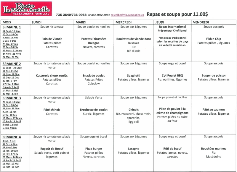 Horaire de la cuisine Édupôle