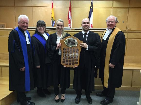 Viviane Tremblay, originaire de Montréal, et Danick Jalbert, originaire d’Edmundston, tous deux de la Faculté de droit, ont remporté le trophée Pierre-Amand-Landry lors du tribunal-école Pierre-Amand-Landry qui a eu lieu à la Faculté de droit de l’Université de Moncton le mardi 27 février 2018. Ils faisaient partie de l’équipe composée de trois étudiants et d’une étudiante qui ont participé à ce concours annuel, qui a lieu depuis 1980, et qui est réservé aux quatre meilleures plaideuses et meilleurs plaideurs de la Faculté de droit de l’Université de Moncton.