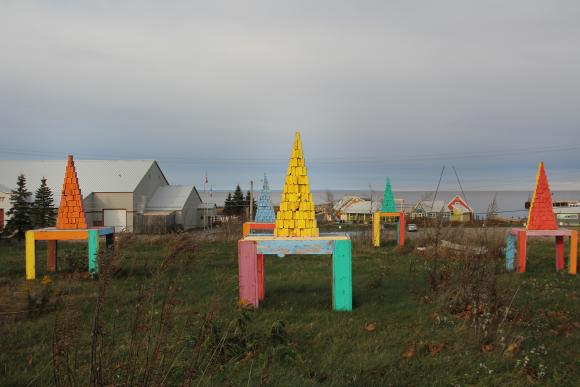 Denis Lanteigne, Monter aux cieux, 2017, installation : bois et chaux teintée